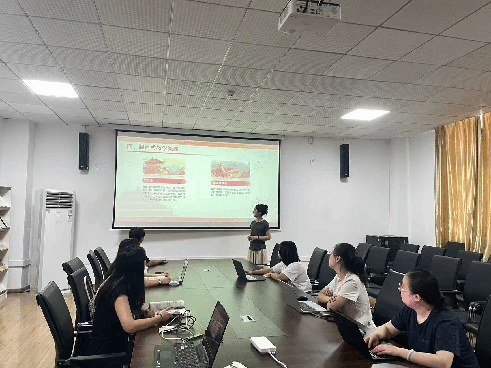 在案例教学资源建设环节,专题一负责人钱老师分享了专题一案例库。案例库涵盖了经典理论案例、当代实践案例及现下热点事件等多个类别,为理论教学提供了丰富的素材支撑。围绕案例库的完善,教师们展开热烈讨论。一方面,针对部分案例的“时效性”与“代表性”提出优化建议,明确要筛选更贴合当前社会热点、更能体现马克思主义理论解释力的案例;另一方面,探讨案例的“使用场景”与“教学策略”,确定不同案例需匹配不同的教学环节。通过集体研讨,进一步明确了案例库的建设标准与更新方向,为构建标准化、高质量的教学资源库奠定基础。