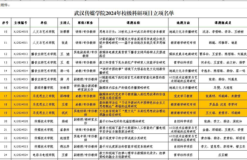 近日,学校下发了《304am永利集团关于公布2024年校级科研项目立项结果的通知》,我院邵峥嵘、王雪、祝庆等三位老师的项目获批立项。在项目申报过程中,院领导高度重视,广泛动员教师积极参与,项目团队凭借自己扎实的科研功底、创新思路在竞争中获批立项。