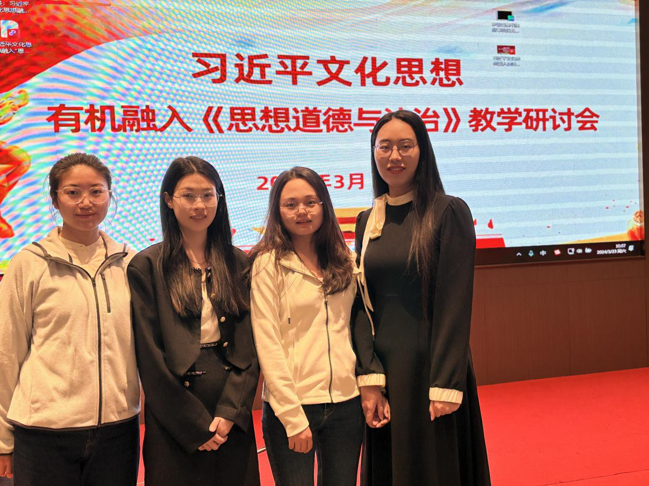 推动党的创新理论成果“三进”是高校思政课的重要任务。为了更好地在“思想道德与法治”课教学内容中有机融入习近平文化思想,2024年3月23日至3月25日,我院“思想道德与法治”教研室胡凡凡、张祥贝、邓爽、李光雯四位教师在昆明参加了习近平文化思想有机融入“思想道德与法治”教学研讨会。