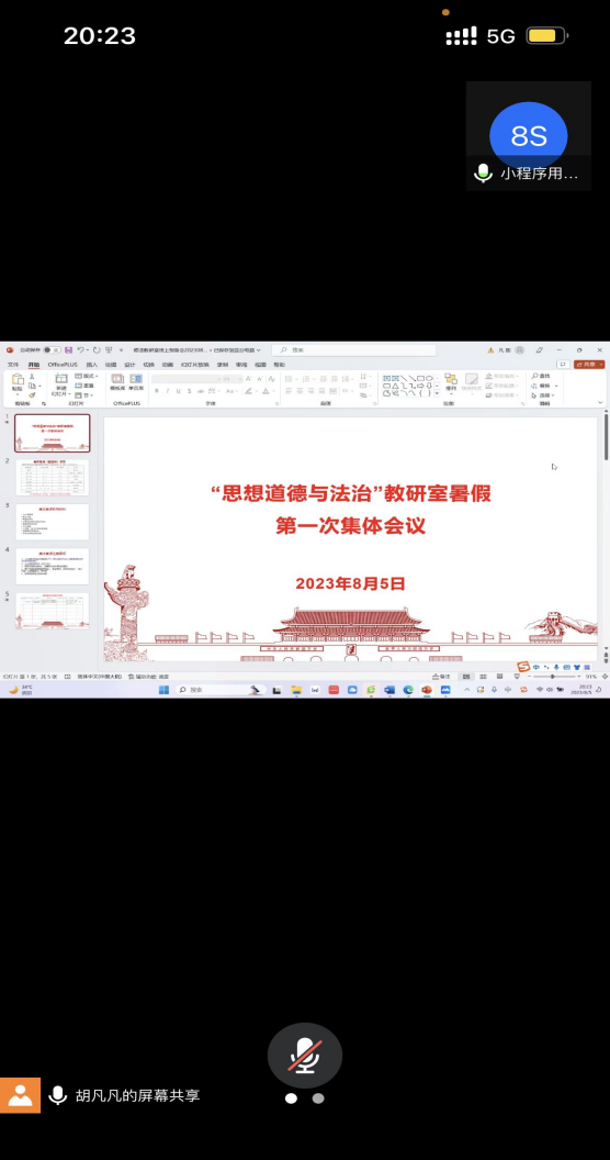 为了更好地开展新学期工作,2023年8月5日20:00,德法教研室在腾讯会议召开了2023-2024第一学期期初集体备课活动。本次活动主要围绕新学期的工作部署和专题备课情况进行任务分解和探讨,会议由胡凡凡老师主持。
